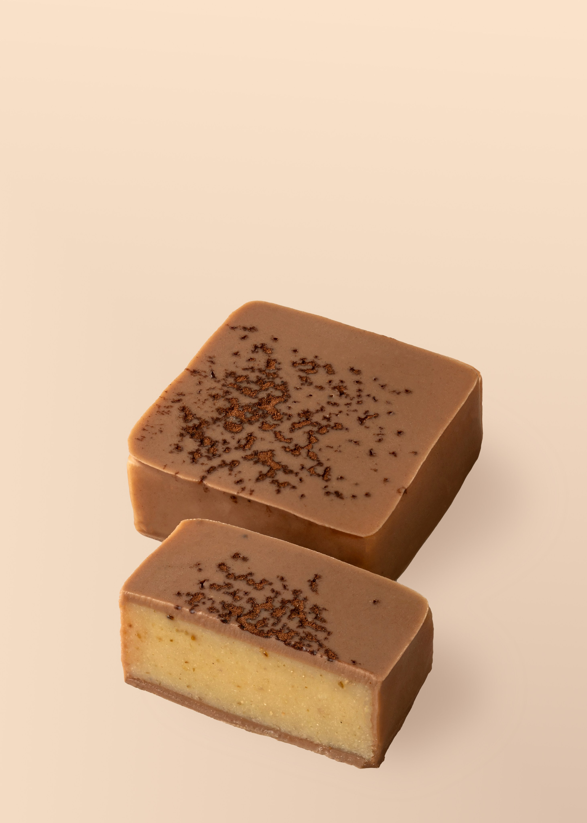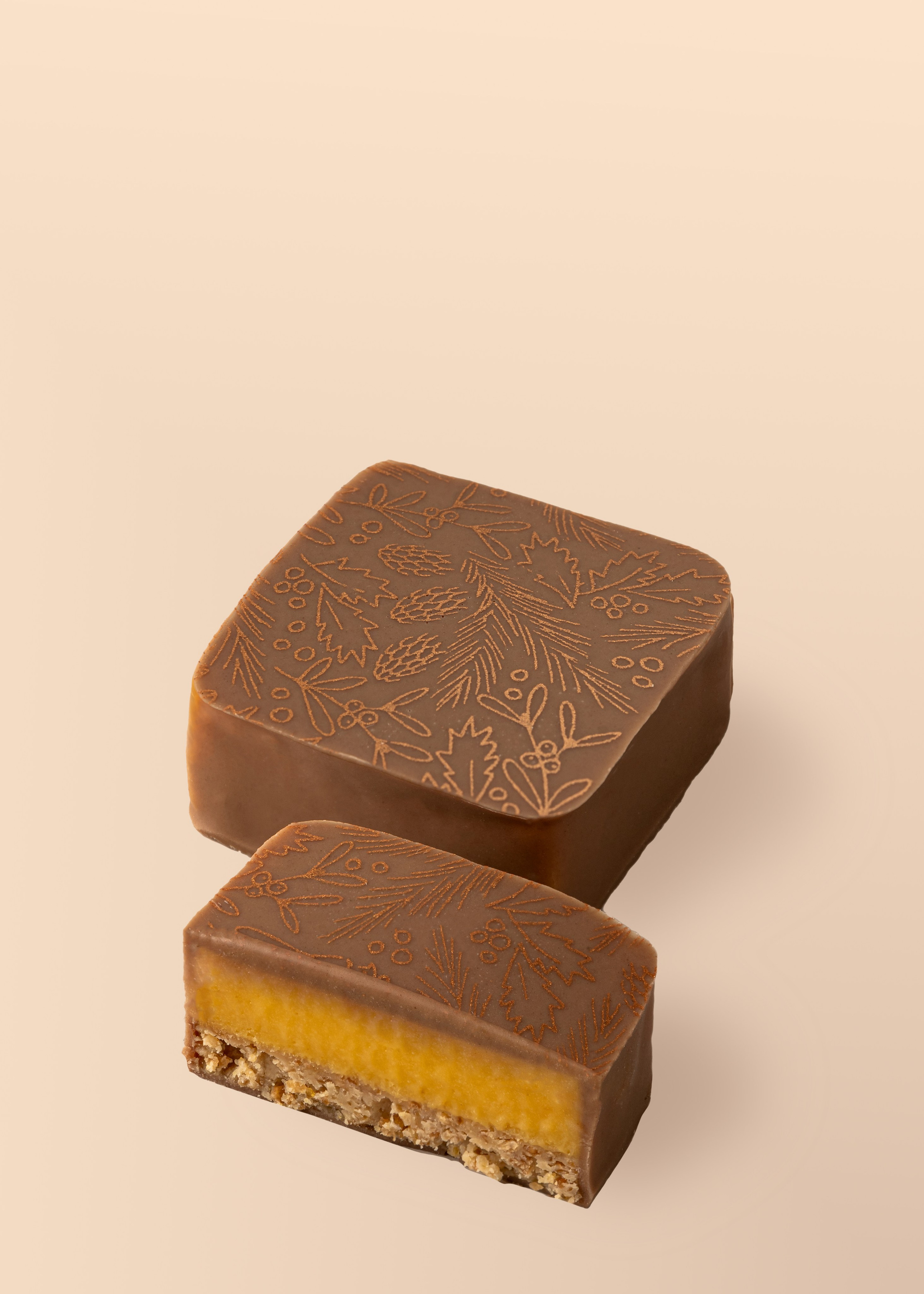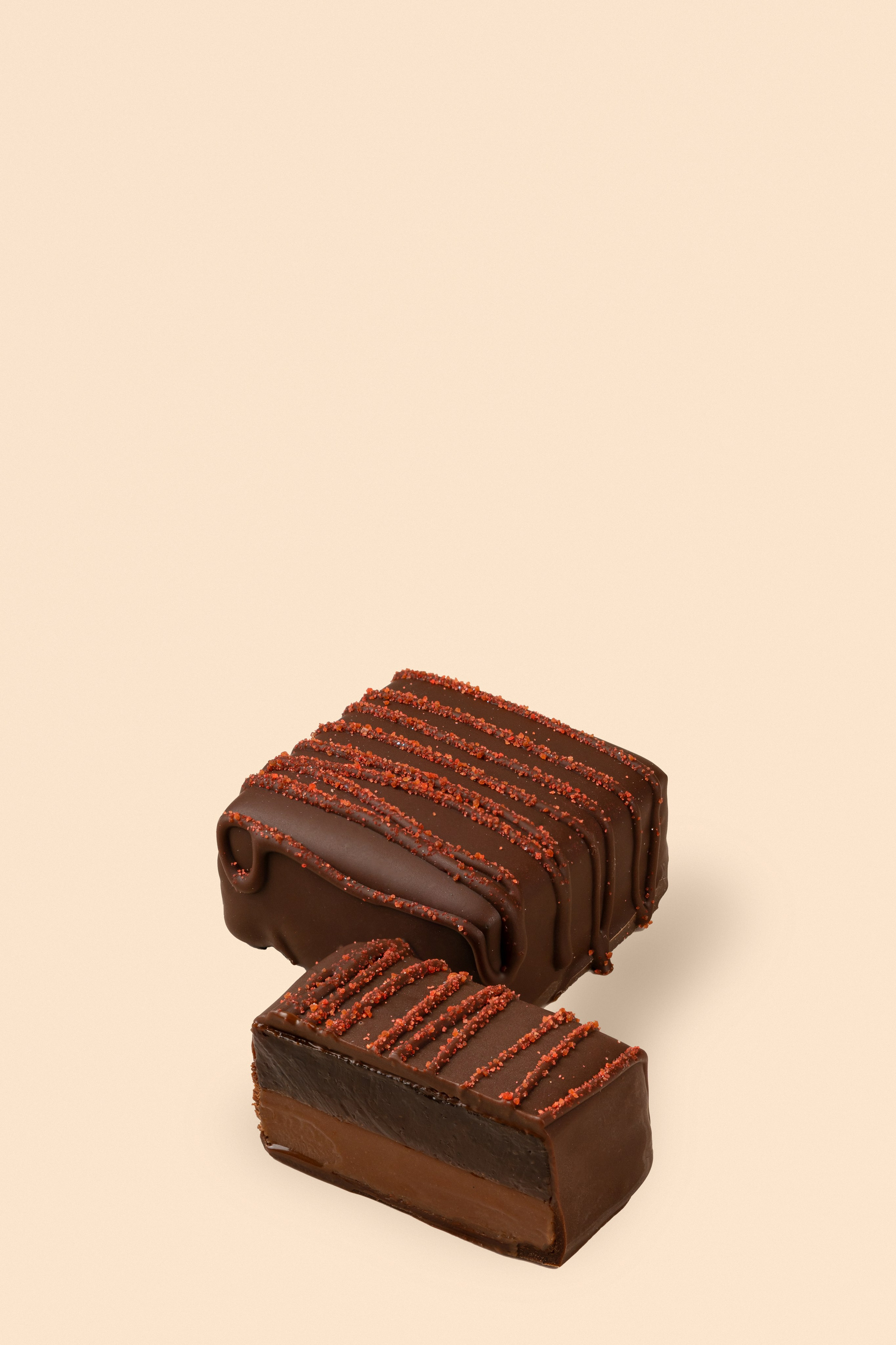Далее идут нарезные конфеты. Обычно квадратные, прямоугольные или в форме батончиков, они имеют гладкую, бархатистую поверхность, которая моментально цепляет на себя отпечатки пальцев, мелкие крошки шоколада и сколы. А еще часто имеют послойную начинку, которая может смазаться и запачкать один слой другим.